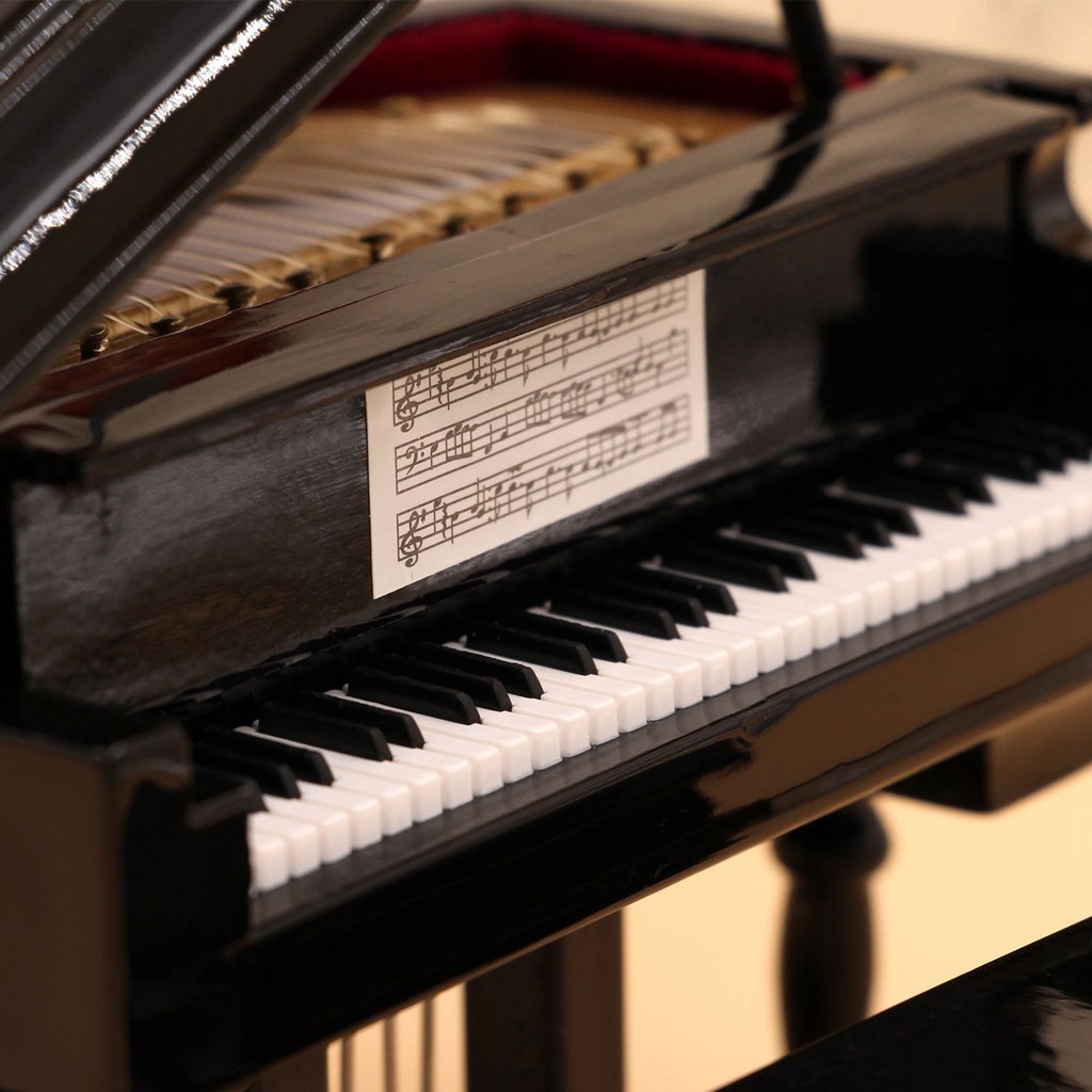 Black Baby Grand Piano Music Box With Bench And Black Case Music